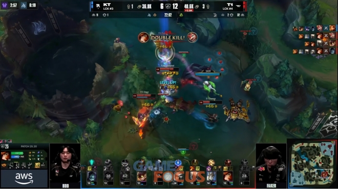 T1은 본인들이 가진 주도권을 바탕으로 오브젝트도 관리하며 초반 게임을 구리려 했으나 중요 순간 마다 ‘Cuzz’의 문도가 벽처럼 T1 선수들을 막았다.