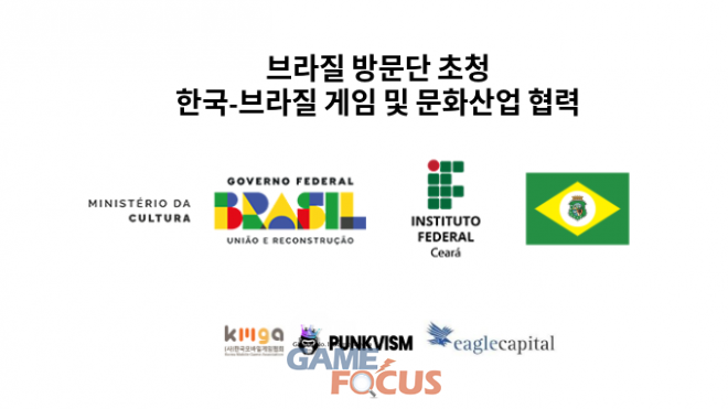(사)한국모바일게임협회(회장 황성익)와 펑크비즘(대표 황현기), 그리고 이글캐피탈(대표 우연호)은 국내 최대 게임쇼 '지스타 2025' 기간에 맞춰 오는 11월 13일(목)부터 14일(금)까지 이틀간 브라질 문화부 창조경제부(Creative Economy ministry of Culture of Brazil)의 안드레아 기마랑이스(Andrea Guimarães) 국장, 밀레나 실비노 에반젤리스타(Milena Silvino Evangelista) 국장, 세아라 연방 교육 과학 기술 연구소(IFCE, Federal Institute of Education, Science and Technology of Ceará)의 월리 메네제스(Wally Menezes) 총장과 브라질 게임산업협회(Abragames - Brazilian Game Companies Association) 관계자 등 5명으로 구성된 브라질 게임 산업 방문단을 공동으로 초청한다고 12일 밝혔다.