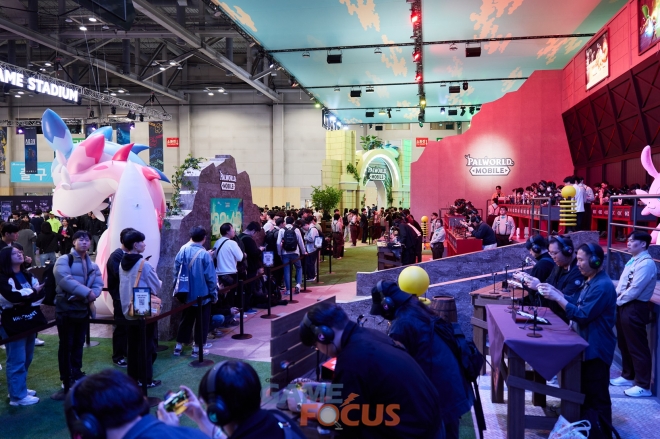 크래프톤이 13일 개막한 '지스타 2025'에 신작 '팰월드 모바일'의 시연 버전을 최초로 공개했다. 이날 크래프톤 부스에는 팰월드 모바일을 즐기기 위한 유저들이 몰려 최대 150분의 대기 시간이 발생하며 게임의 높은 관심을 입증했다.
