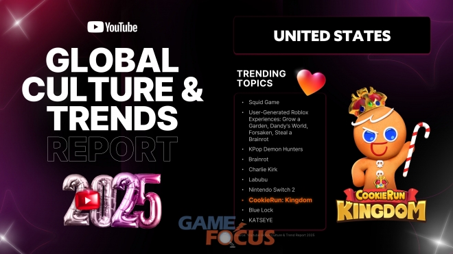 올해 미국 지역 유튜브 트렌딩 토픽 TOP 10은 오징어게임, 케이팝 데몬 헌터스, 쿠키런: 킹덤, 캣츠아이(KATSEYE) 등 K-컬처를 기반으로 한 IP가 시장을 휩쓸었다. 시리즈 애니메이션, 음악에 이어 게임까지 한국 문화에 바탕을 둔 다양한 분야의 콘텐츠가 함께 이름을 올리며, 미국에서 K-컬처의 영향력이 전 장르로 확산되고 있음을 보여줬다.