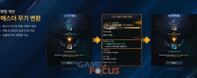 또한 반복 조작에 대한 피로도를 완화하기 위해 각종 성공 시스템을 갖고 있는 콘텐츠에 대한 10회 연속 기능이 추가되며 정밀한 조율이 필요한 어빌리티 스톤 역시 AI가 직접 깎아 주는 스마트 세공 시스템이 도입된다. 에스더 무기 역시 10단계가 추가되며 에스더 무기를 일반 무기로 변환할 수 있는 기능을 추가한다. 변환된 일반 무기는 이전 에스더 무기의 성장치가 기록돼 유저가 원할 경우 이전의 에스더 무기로 복각이 가능하다.
