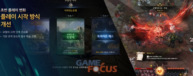이와 함께 캐릭터 육성에 부담을 느끼는 기존 유저 및 신규 유저들이 보다 게임에 잘 적응할 수 있도록 성장 구간을 완화시키고 캐릭터 생성 전 모든 캐릭터를 플레이 해본 후 캐릭터를 생성할 수 있도록 개선한다. 또한 트리시온 튜토리얼 이후 필수 조작 학습을 제외한 모든 부분을 간략하게 구성하는 한편 스토리 진행 구간 개선을 통해 볼다이크 대륙까지의 성장을 단축시키고 메인 퀘스트의 진행에 맞춰 다음 장비를 제공하는 형태로 1585까지 상시 지원하도록 개선된다.