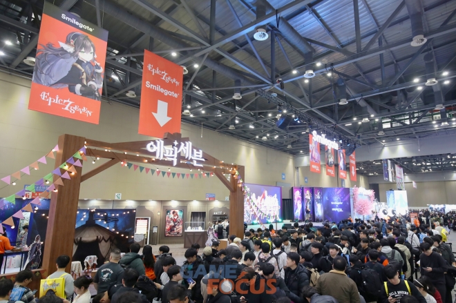 에픽세븐 부스는 오는 12월 18일 업데이트 예정인 신규 외전 에피소드 ‘스러진 잔불의 비가’를 기반으로 스토리 속에 들어온 듯한 여러 체험형 이벤트로 꾸며졌다. 특히, 스토리의 주인공 중 하나인 ‘소녀 디에네’의 목소리로 오디오 가이드를 제공하고, 스토리의 포인트인 반전감을 더하는 미디어관을 운영하며 특별함을 더했다. 서비스 7주년을 맞은 장수 게임임에도 부스 앞에는 연일 두 시간이 넘는 체험 대기줄이 형성되는 등 변함없는 높은 인기를 증명했다.