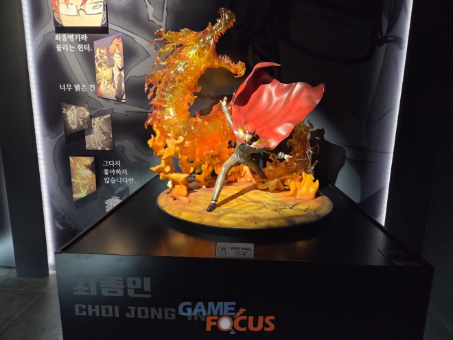 특히 이번 전시회에서는 웹툰의 주요 명장면을 재구성한 전시물은 물론 ‘기사단장 핏빛의 이그리트’와 ‘최강의 마수 개미왕’, ‘E급 성진우’와 ‘S급 성진우’ 등 라이프 사이즈(실물 크기) 피규어와 제주도 레이드 전투 장면을 구현한 파노라마 스페셜 영상, 생명의 신수와 성진우가 사용한 무기를 전시해 원작 팬들을 즐겁게 만들었다.