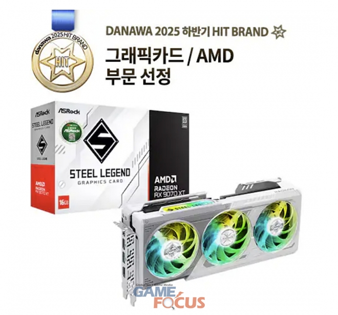 애즈락(ASRock)은 AMD 라데온 GPU 기반 게이밍 그래픽카드 ‘ASRock Radeon RX 9070 XT Steel Legend 16GB OC’가 ‘2025년 하반기 다나와 히트브랜드’ 그래픽카드 부문에 선정됐다고 밝혔다.