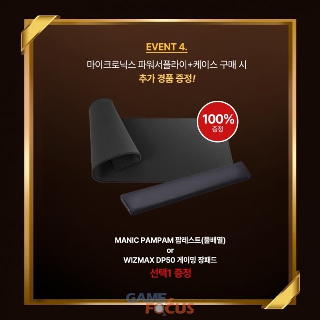 이와 함께 마이크로닉스 파워서플라이와 PC 케이스를 함께 구매한 고객에게는 추가 사은품 혜택도 마련됐다. 행사 대상 제품을 동시 구매할 경우 MANIC PAMPAM 팜레스트(풀배열) 또는 WIZMAX DP50 게이밍 장패드 중 하나를 선택해 증정받을 수 있다.