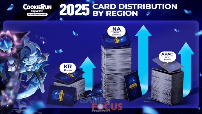 이는 지난해 유통된 카드 수 대비 약 180% 증가한 수치다. 전 세계 3억 명의 누적 이용자를 보유한 쿠키런 IP의 글로벌 인지도를 바탕으로 TCG 입문층 및 캐주얼 유저 중심의 플레이어 풀을 성공적으로 확보한 데 따른 성과다. 현재 쿠키런 카드 게임이 판매되고 있는 카드숍은 전 세계 약 1천 곳에 달한다.