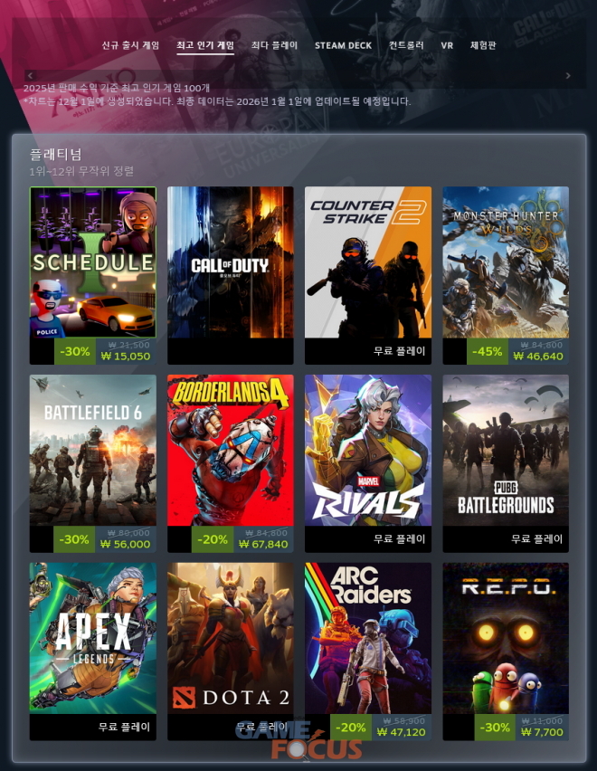 '스팀' 이용자들이 가장 많이 구매하고 플레이한 '2025년 최고 인기 게임'이 공개됐다.