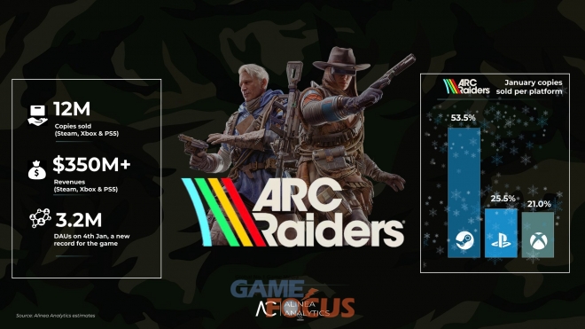 알리네아 애널리틱스 수석 분석가 리스 앨리엇(Rhys Elliott)은 이러한 흥행에 대해 "아크 레이더스는 유료 패키지 게임임에도 불구하고 1월 4일 DAU가 역대 최고치인 320만 명을 기록했다. 이는 단순한 초기 흥행을 넘어 장기적인 라이브 서비스 성공 궤도에 올랐음을 시사한다"고 분석했다.