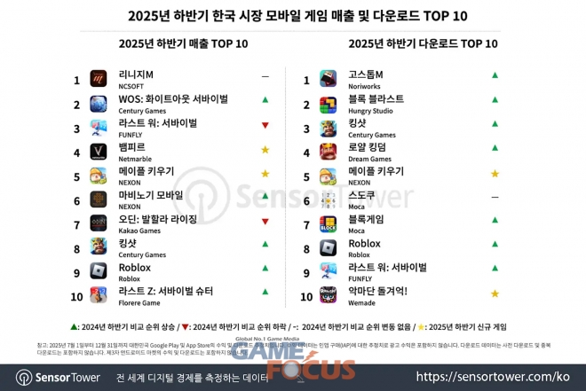 2025년 하반기 매출 및 다운로드 순위: '화이트아웃 서바이벌'의 성장과 국내 신작 RPG의 두각