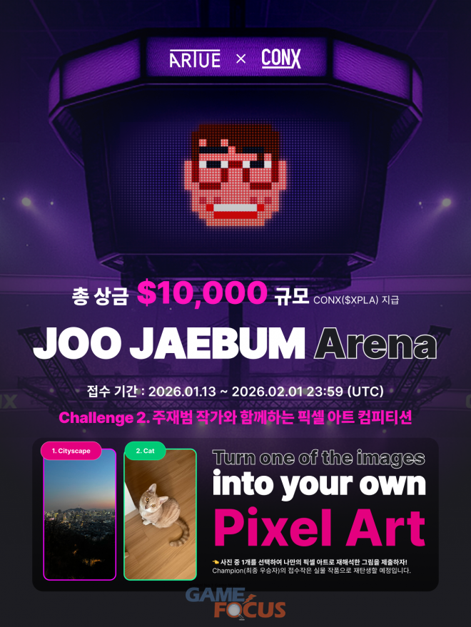 CONX(콘엑스, 구 XPLA)가 픽셀 아티스트 ‘주재범’과 함께 웹3 아트 프로젝트 ‘주재범 아레나(JOO JAEBUM Arena)’를 진행한다고 14일 밝혔다.