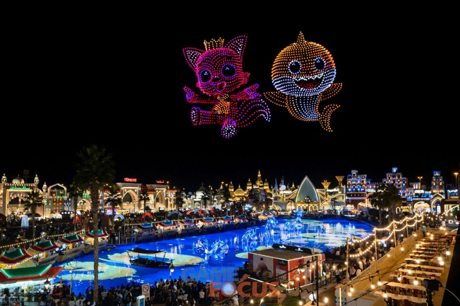 먼저, 더핑크퐁컴퍼니는 지난 1월 9일부터 오는 2월 15일까지 열리는 제11회 두바이 대표 키즈 페스티벌 ‘키즈 페스트’에 공식 초청받아, 글로벌 빌리지 내 메인 스테이지를 포함해 매일 3회씩 총 96회의 ‘핑크퐁 아기상어 쇼’를 선보인다. 특히 올해 11회째를 맞는 행사 개막일에는 약 3,000대의 드론이 투입된 대규모 3D 드론쇼가 펼쳐졌으며, 핑크퐁과 아기상어가 오프닝 게스트로 등장해 두바이 밤하늘을 수놓았다.