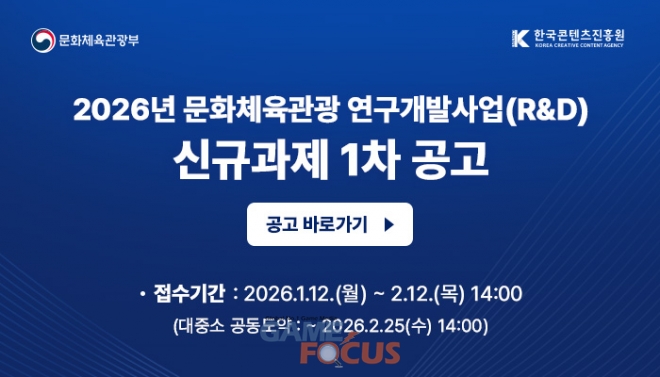문화체육관광부(장관 최휘영)와 한국콘텐츠진흥원(원장직무대행 유현석, 이하 콘진원)은 콘텐츠와 인공지능 융합으로 문화체육관광산업을 견인할 우수한 연구개발 성과 창출을 목표로‘2026년 문화체육관광 연구개발 사업’을 본격 추진한다.