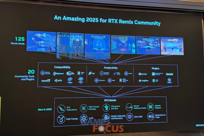 고전 게임에 현대적 기술을 입히는 'RTX 리믹스' 커뮤니티에 대한 소개도 이어졌다. 'RTX 리믹스'는 RTX AI PC용 모딩 플랫폼으로, 클래식 PC 게임의 그래픽을 새롭게 재해석하고 신규 기술을 적용하는 것을 돕는 툴과 기술을 아우른다. 2025년에는 50개 이상의 새로운 리믹스 모드가 출시되었고, 생산성 향상을 돕는 20개 이상의 툴이 오픈 소스 기여, 플러그인 형태로 제공됐다.