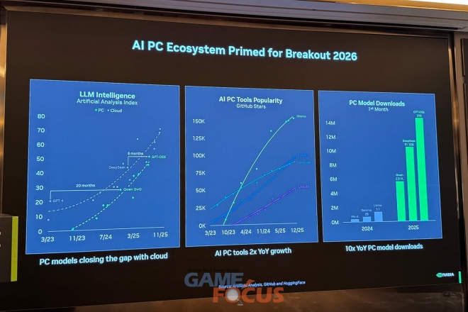 옌 디렉터는 "1년에서 1년 반 정도에 걸쳐 AI PC 생태계는 많은 변화를 겪었고 '붐'이 일고 있다. DLSS 같은 기술 외에도 LLM, 크리에이티브 등 다방면으로 AI PC가 활용되고 있다. 클라우드 AI와 로컬 AI PC 사이의 성능 격차는 과거 2년 이상이었지만 현재는 6개월 수준으로 좁혀졌다"고 설명했다.