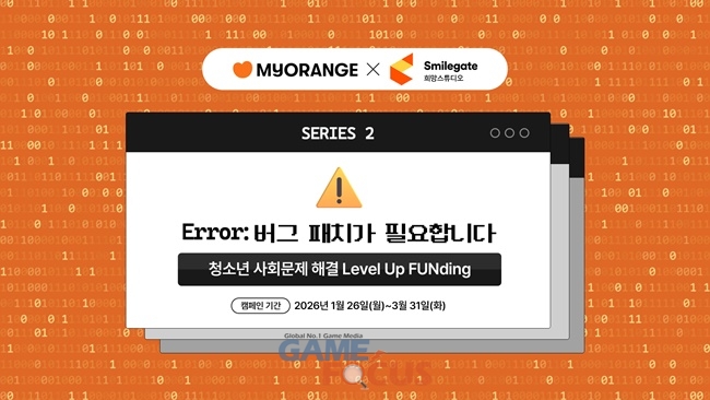 스마일게이트 희망스튜디오(이사장 권혁빈)가 기부 캠페인 '에러: 버그 패치가 필요합니다' FUNding을 3월 31일까지 실시한다고 27일 밝혔다. FUNding은 희망스튜디오가 진행하는 기부 캠페인의 총칭으로, 누구나 '재미있게(fun)' 기부에 참여할 수 있다는 의미를 담고 있다.