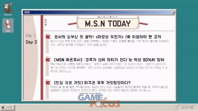 4. 내러티브 구성: 용사가 보내는 뻔뻔한 의뢰 이메일과 컴퓨터 바탕화면의 뉴스 기사 사이의 유쾌한 간극을 경험할 수 있다.