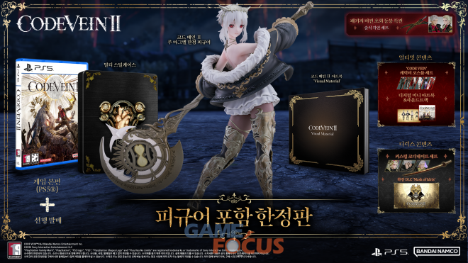 ‘코드 베인 Ⅱ’(한국어판)을 지금 바로 플레이할 수 있다. PlayStation®5용 패키지 버전 일반판 및 피규어 포함 한정판, PlayStation®5, Xbox Series X|S, STEAM®용 다운로드 버전을 만나볼 수 있다. (STEAM®용 다운로드 버전은 1월 30일부터 플레이 가능)