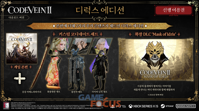 반다이남코 엔터테인먼트 코리아(지사장 장태근)는 드라마틱 탐색 액션 RPG PlayStation®5, Xbox Series X|S용 ‘코드 베인 Ⅱ’(한국어판)을 29일 발매했다고 발표했다. (STEAM® 버전은 1월 30일 발매)
