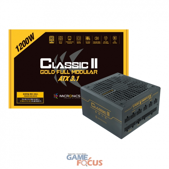 전시 제품 중 Classic II 1200W 80PLUS 골드 풀모듈러 ATX 3.1은 ATX 3.1 규격과 PCIe 5.1을 지원하는 고출력 파워서플라이로, 골드 등급임에도 80PLUS 플래티넘 인증을 획득해 최대 92% 이상의 고효율을 제공한다. 또한 풀모듈러 설계를 적용해 케이블 정리 편의성을 높였으며, 12V-2x6(105℃ 내열 등급) 케이블과 일본산 105℃ 캐패시터를 적용해 고사양 시스템에서도 안정적인 구동 환경을 지원한다.
