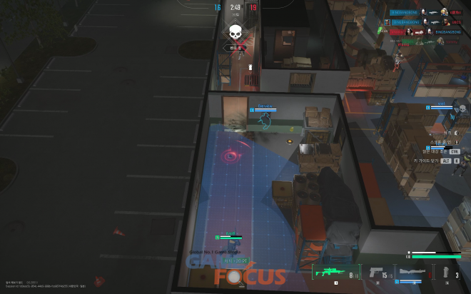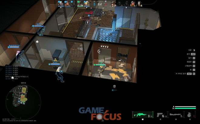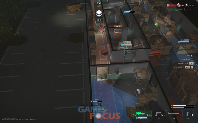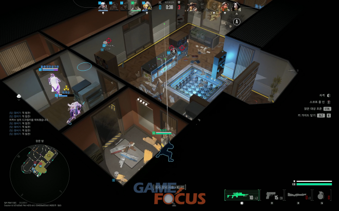 호쾌한 '런앤건'이 아니다 보니 슈팅의 재미가 어떨까 걱정스러운 면이 있을 수도 있다. 그런데 이런 게임들과는 결이 다르다. '카운터 스트라이크'나 '발로란트' 그리고 '레인보우식스 시즈'에서 느낄 수 있는, 조여 드는 긴장감이 재미 포인트다. 탑뷰 시점임에도 앞서 언급한 실시간 시야 공유 시스템, 장애물에 가려지는 시야 시스템 덕분에 긴장감이 상당하다.