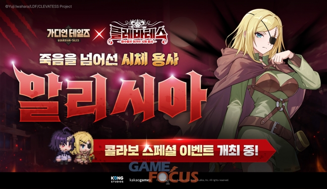 카카오게임즈(대표 한상우)는 20일, 글로벌 게임 개발사 콩 스튜디오(대표 석광원)가 개발한 모바일 RPG ‘가디언 테일즈’에 인기 애니메이션 ‘클레바테스 – 마수왕과 아기와 시체 용사’와의 2차 콜라보레이션 업데이트를 진행했다고 밝혔다.