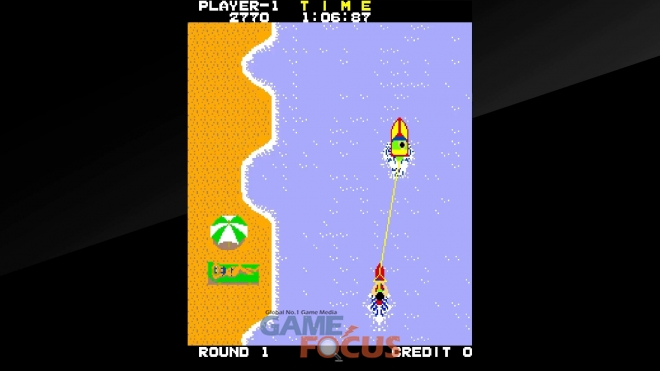 모터보트에 끌려가는 수상스키 선수를 조종하여 장애물을 피하며 골을 향해 나아가는 게임으로, 작은 장애물은 점프로 피하거나, 점프대를 이용한 화려한 묘기를 선보이며 고득점을 노려야 한다. 완주하면 훌라 댄서가 춤추는 섬에서 추가 점수를 얻을 수 있는 찬스도 주어진다.