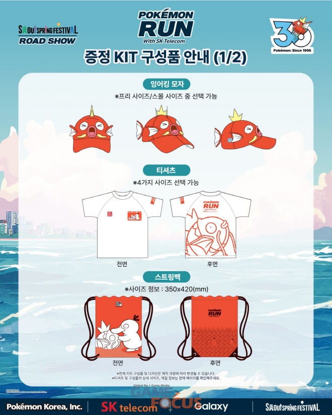 참가자에게는 모자, 티셔츠, 번호표, 키링, 스트링백 등이 포함된 잉어킹 테마 키트가 사전에 제공된다.