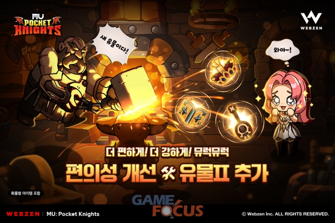 포켓 나이츠는 26일(목) 뮤 기사단의 능력치를 올릴 수 있는 육성 콘텐츠 '유물'에 신규 아이템을 추가한다.
