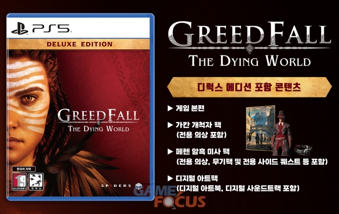 에이치투 인터렉티브(대표 허준하)는 ‘스파이더즈(Spiders)’에서 개발한 액션 RPG ‘그리드폴: 더 다잉 월드(Greedfall: The Dying World)’의PC, PS5 한국어판을 오는 3월 19일(목)에 정식 출시하며, 오늘(2월 27일)부터 PS5 실물 패키지 버전인 ‘그리드폴: 더 다잉 월드 디럭스 에디션’(소비자가격 69,800원)의 예약 판매를 시작한다고 밝혔다.