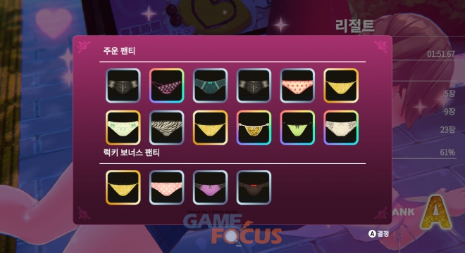 귀갓길에는 어째선지 여기저기에 팬티가 떨어져 있는데…!? 주운 팬티로 갈아입기가 가능! 물론 귀가 후 세탁해서 입는다는 설정이므로 불필요한 걱정은 NO! 다양한 디자인의 팬티를 모으고, 자신만의 취향으로 팬티 코디를 즐기자! 이것이 바로 이번 작품만의 PTA (팬티 탐닉 애호가) 시스템.