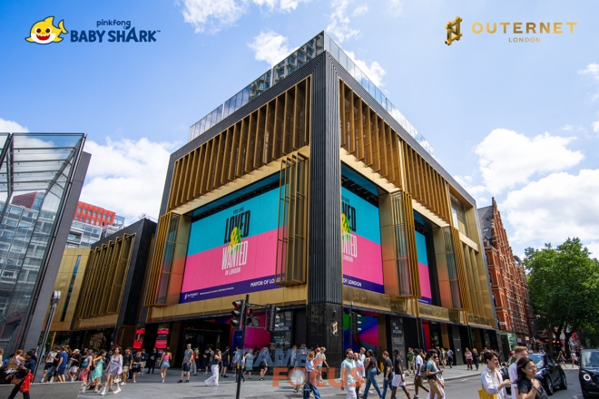 더핑크퐁컴퍼니(대표 김민석)가 세계 최대 규모의 고해상도 LED 스크린 전시 공간을 갖춘 영국의 ‘아우터넷 런던(Outernet London, 이하 아우터넷)’에서 ‘핑크퐁 아기상어(이하 아기상어)’ 체험형 전시 ‘아기상어 이스터 스플래시(Baby Shark’s Easter Splash)’를 개최한다.