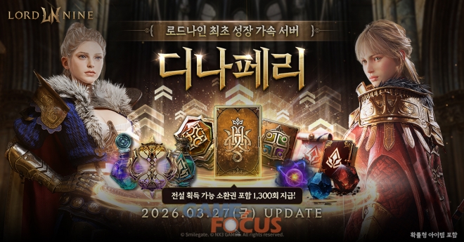 스마일게이트는 올클래스(ALL CLASS) MMORPG ‘로드나인’(개발사 엔엑스쓰리게임즈)에서 신규 성장 가속 서버 ‘디나페리’를 오는 27일 오픈하고 사전 예약을 진행한다고 18일(수) 밝혔다.