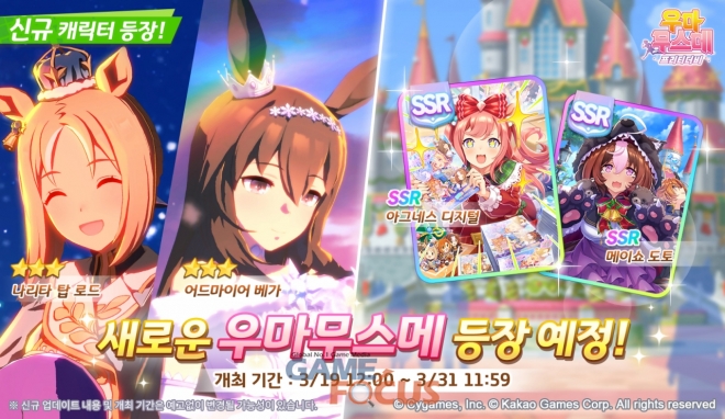 또한 3월 19일부터 6월 15일까지 기간 한정으로 레이스 이벤트 ‘마스터즈 챌린지’를 진행한다. ‘마스터즈 챌린지’는 강력한 우마무스메들과 레이스를 펼칠 수 있는 콘텐츠로, 이용자들은 레이스에서 우승해 첫 1착 보상을 획득할 수 있다.