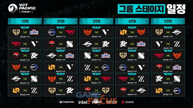올해의 첫 번째 VCT 퍼시픽 정규 시즌인 스테이지 1은 4월 3일(금)부터 5월 17일(일)까지 7주 동안 진행된다. 이번 대회에는‘마스터스 산티아고‘를 제패한 농심 레드포스를 필두로, DRX와 젠지(GEN), T1을 포함해 총 12개 팀이 참가하여 치열한 승부를 펼칠 예정이다.