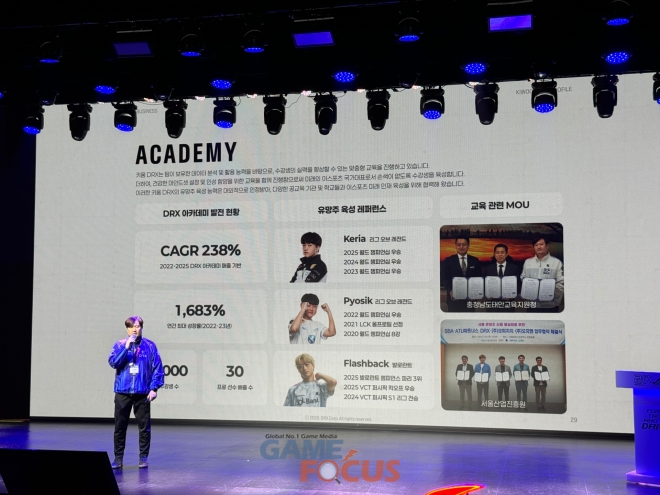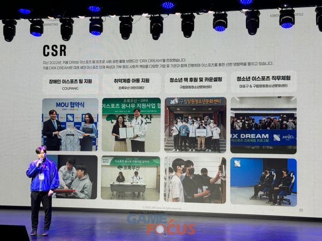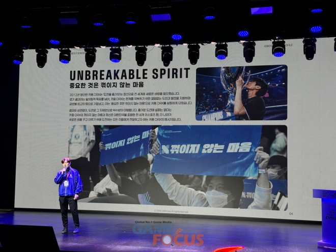 다음으로는 키움 DRX 양선일 대표가 무대에 올라 키움 DRX에 대한 소개를 이어갔다. 그는 '중요한 것은 꺾이지 않는 마음'이라는 말이 키움 DRX를 상징하는 표현이자 사회적으로 트렌드가 되었던 일화를 소개하며 운을 뗐다.