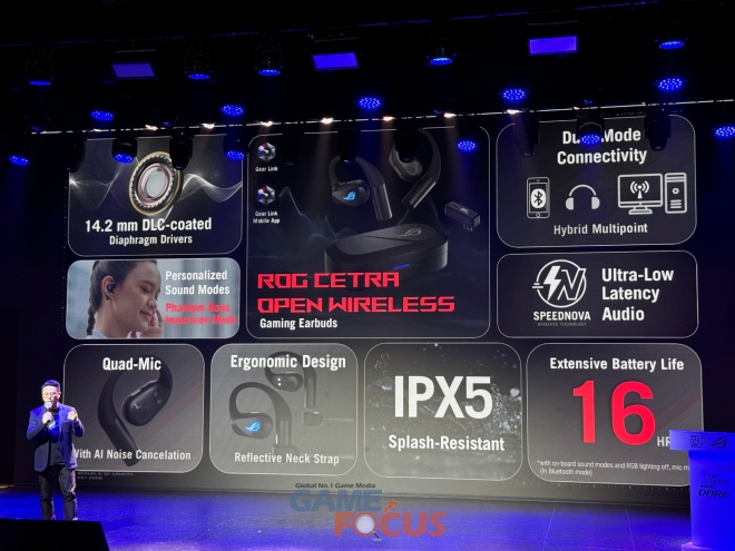 이날 에이수스는 유명 '발로란트' 프로게이머 'Demon 1' 맥스 마자노프와 1년 동안 협업해 제작한 마우스 'ROG HARPE II ACE', 75% 레이아웃과 HE(Hall Effect) 자석축이 적용된 키보드 'ROG FALCHION ACE 75 HE', 96% 레이아웃에 자유로운 키캡 및 스위치 커스터마이징이 강점인 키보드 'ROG STRIX MORPH 96 WIRELESS', 하이파이맨(HIFIMAN)과의 협업으로 탄생한 헤드셋 'ROG KITHARA', 초저지연 2.4Ghz 연결과 오픈이어 디자인 그리고 16시간 연속 사용의 배터리 타임을 자랑하는 이어폰 'ROG CETRA OPEN WIRELESS' 등을 공개했다.