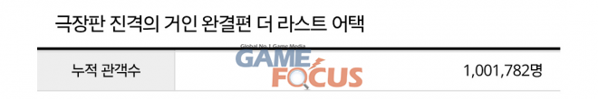<극장판 진격의 거인 완결편 더 라스트 어택>은 2025년 3월 13일 메가박스 최초로 단독 개봉해 95만 관객을 동원하며 흥행 저력을 입증, 역대 메가박스 단독 상영작 1위에 오르는 기록을 세웠다. 이후 관객들의 뜨거운 성원에 힘입어 2026년 3월 메가박스를 비롯해 CGV, 롯데시네마 특수관 상영으로 확장했고, 최종 100만 관객을 돌파하며 의미 있는 성과를 달성했다. 이는 역대 ‘진격의 거인’ 극장판 영화 중 최초 100만 관객 달성이라는 점에서 시리즈 흥행의 새로운 이정표를 세운 셈이다.
