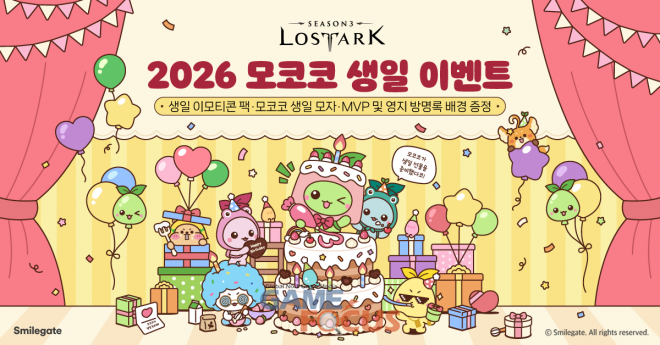 스마일게이트는 대한민국 대표 MMORPG(다중접속역할수행게임) ‘로스트아크’가 게임의 인기 마스코트 ‘모코코’의 생일을 기념해 특별한 이벤트를 실시한다고 1일(수) 밝혔다.