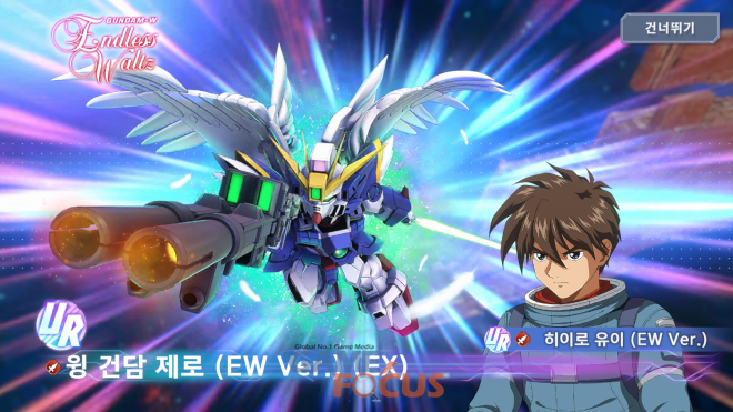 건담 팬들이라면 가슴이 뛸 만한 라인업도 포진했다. 이번 픽업 뽑기에는 UR '윙 건담 제로(EW판)(EX)'와 UR '더블오 라이저(최종결전사양)(EX)' 등 각 시리즈를 상징하는 기체들이 등장한다. 성능뿐만 아니라 화려한 연출까지 갖춘 이 기체들은 내 부대의 전력을 단숨에 끌어올려 줄 핵심 전력이다.