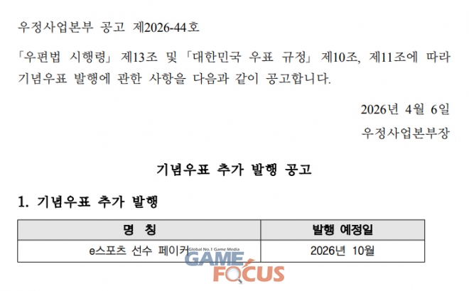 우정사업본부는 6일 공고를 통해 이상혁 선수의 기념 우표를 10월 발행한다고 밝혔다. 이 역시 e스포츠 선수 최초의 기록이다.