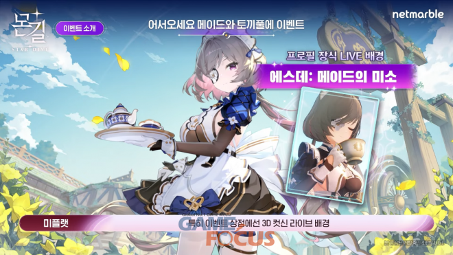 이외에도 캐릭터들을 모집하는 소환권인 '약속의 나침반'과 '운명의 나침반'을 제공하는 스타트 출석 이벤트, 첫 번째 픽업 캐릭터 '에스데'를 획득할 때마다 최대 개화 시까지 '기억의 나침반'을 지원하는 이벤트, 3D 컷신 라이브 배경을 얻고 숨겨진 이야기도 감상할 수 있는 '어서오세요 메이드와 토끼풀에' 이벤트 등도 게임 론칭 후 진행된다.