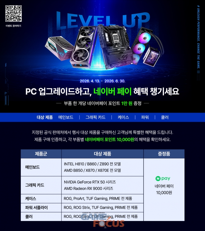 6월 30일까지 진행하는 이번 ‘에이수스 PC 업그레이드 인증 이벤트’는 지정된 국내 공식 판매처에서 유통하는 메인보드, 그래픽카드, PC케이스, 파워 서플라이, AIO 쿨러 제품을 구매한 후 인증을 완료한 고객에게 제품 1개당 10,000원 상당의 네이버 페이를 제공하는 행사다.