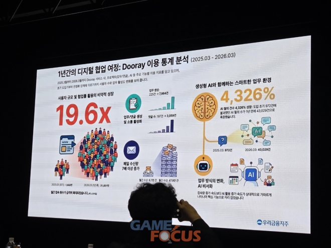 우리 금융은 SaaS 서비스로 내부 업무 환경 개선을 위해 국산, 외산 서비스를 포함해 10개 정도의 솔루션을 검토했으며 협업툴 서비스 기능 평가 결과 다른 서비스에 비해 저렴한 비용, 커스터마이징의 부담이 없었고, 단일 앱 형태 및 한글 오피스 미지원 등 여러 요소를 고려해 두레이를 선택했다고 덧붙였다.