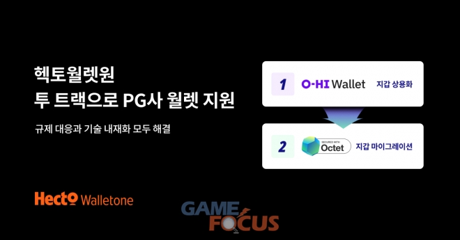 헥토월렛원이 PG업계 디지털자산 지갑(월렛) 도입 가속화를 위해 ‘오하이(O-HI)월렛’과 ‘옥텟 WaaS(Wallet as a Service)’를 활용한 투 트랙 전략을 제시한다. 현행 규제를 준수하며 오하이월렛으로 신속히 서비스를 시작해 역량을 쌓고 추후 옥텟을 이용해 디지털 자산 결제 인프라 내재화까지 이어지는 로드맵이다.