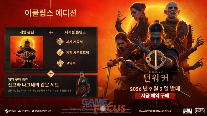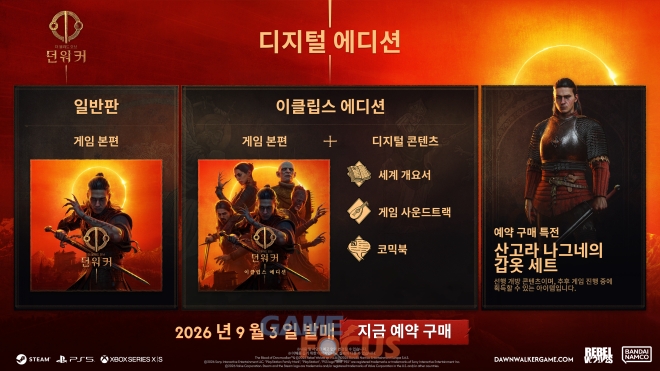 반다이남코 엔터테인먼트 코리아(지사장 장태근)는 ‘더 블러드 오브 던워커’(한국어판)를 PlayStation®5, Xbox Series X|S, STEAM®용으로 2026년 9월 3일(목) 발매한다고 발표했다.