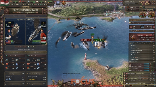해군력은 곧 국력이며, 대양의 제해권은 패권국의 힘을 상징한다. 플레이어는 강력한 전함을 설계하고 세계 각지의 해협을 수호하며, 함포 외교를 통해 약소국을 압박할 수 있다. 또한 막부 말기의 일본을 이끌며 내부의 혼란과 외세의 압력을 극복하고, 열강에 맞설 수 있는 근대 국가로 성장시킬 수 있다.