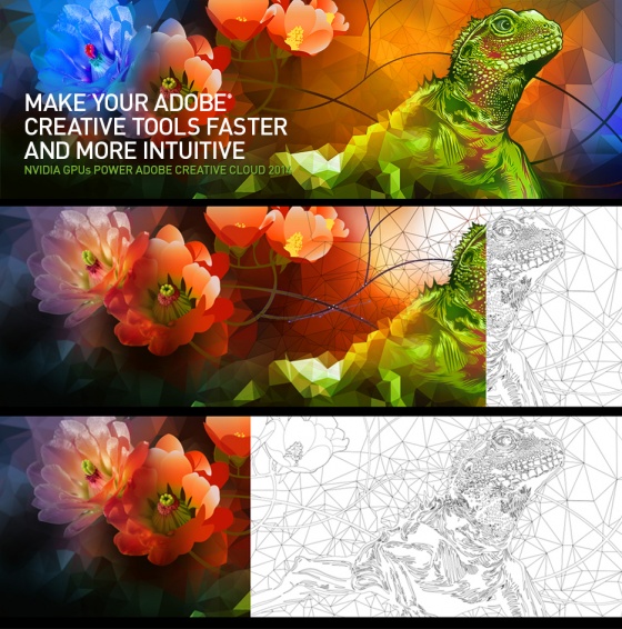 엔비디아 GPU가속으로 전문적인 수준의 그래픽을 구현해야 하는 디자이너들은 그래픽 작업을 한층 수월하게 할 수 있게 됐다. 디자이너들은 엔비디아의 새로운 GPU가속 지원을 통해 모든 해상도에서 벡터 아트를 자유자재로 다룰 수 있고, 기존 윈도우 7 또는 윈도우 8 기반의 시스템에서 호환해 사용했던 GPU보다 작업시간을 10배 가량 단축할 수 있다. 특히 일러스트레이터 CC에서 GPU 가속을 호환하면, 2D 벡터의 고해상도 그래픽작업에도 호환이 되기 때문에 2D 작업을 진행해야만 하는 웹, 지면, 모바일 그래픽 디자이너, 일러스트레이터, 타이포그래픽 디자이너들에게는 반가운 소식이다.