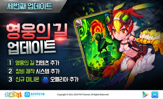 (주)파티게임즈(대표 김현수)가 서비스하고 애피스토게임즈(대표 황부기, 신태환) 개발한 세계대항 RPG '미니몬마스터즈'에 금일(21일) 세 번째 업데이트 '영웅의 길'이 공개되었다.