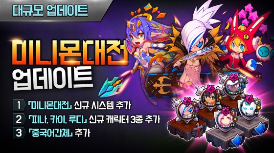 이와 함께 이번 업데이트에서는 신규 영웅 요정 '피나', 거너 '카이'와 상인으로 등장했던 '루디'가 새로운 미니몬으로 추가됐으며, 중국 서비스 이용자들을 위해 중국어 '간체' 서비스가 추가됐다.